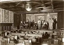 In 1913, Kehlet opened Drachmenn Kroen (English: The Drachmann Inn), a large popular restaurant named after Drachmann who had died in 1909. The room was decorated with a series of paintings by Aksel Jørgensen which incorporated Drachmann and Edith in scenes from Drachmann's works. Feilberg also had plans to convert it into an elegant hall where afternoon guests could have tea accompanied by subtle music while it could be rented out for private celebrations in the evening. However, due to an illness which prompted him to sell, Feilberg never put his plans through but they were realized by his successor, Valdemar Nielsen, who opened Guldaldersalen (English: The Golden Age Hall).[2]