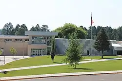 In 2010, construction began on the high school to replace aging buildings at the center of the campus. A-D wings were torn down to make room for a new three-story building.[71] The new main building was completed in late 2011 with classes beginning in January 2012. This is the most recent in a series of capital renovations at the high school including the addition of a new science wing and the newly remodeled R-Wing (formerly the cafeteria).[72] In 2010 Los Alamos Public Schools were commended by Energy Education for their efforts in promoting energy efficiency. LA Schools achieved over a million dollars in energy cost savings during a 56-month period.[73]