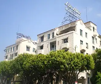 The restoration was helmed by the Los Angeles-based architectural firm M2A who rehabilitated the 75-unit structure, and restored its original decor. The firm restored or recreated Los Altos' original light fixtures, hardware, carpets, plaster work, awnings, and ornamental iron work. The rehabilitation "successfully transformed the property from a vacant, blighted, graffiti-infested building into a healthy, mixed-income building serving the very low income population as well as the market population."[14] Today, Los Altos is once again home to artists, screenwriters, and actors, among other tenants. In 1999, Los Altos received several preservation design awards from the California Preservation Foundation and the Los Angeles Conservancy. The landmark also received a Historic Preservation Award of Excellence from the city of Los Angeles.