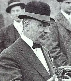 Around the time that Moskovics' career brought him to Los Angeles, in 1909, Carl Fisher was developing the Indianapolis Motor Speedway, and automobile racing was gaining momentum as a business.[3][4] To bring racing to Los Angeles, Moskovics partnered with his old friend Prince; a group of local businessmen including oil man and racing enthusiast Frank A. Garbutt; and the Pacific Electric Railway Company, which supplied spectators by building a line to the new track.[4][6] Public announcements were made and contracts were let in January 1910, and race dates for officially-sanctioned contests were obtained from the Automobile Association of America's Contest Board.[7][8][9]