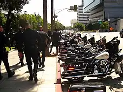 Kawasaki police motorcycles have historically represented the majority of the motorcycle vehicles in the LAPD's motor pool. In recent years, the LAPD has shifted to using Harley-Davidson FLHP and BMW R1200RT-P motorcycles. LAPD motorcycles are painted black and white and carry a radio, emergency lights, a long arm, police equipment, and police documentation. The LAPD also operates a smaller fleet of electric motorcycles and electric scooters.[8] Motorcycle units are not deployed during rainy or inclement weather, during which all traffic units patrol in cruisers.