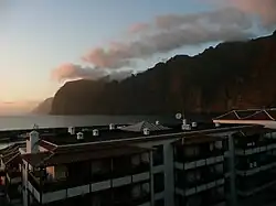 Los Gigantes is a resort town in the Santiago del Teide municipality on the west coast of the Canary Island Tenerife. Its main feature are the giant rock formations, Acantilados de Los Gigantes, that rise from the sea to a height of 500–800 metres (1,640–2,625 ft) after which the town has been named. Los Gigantes means "The Giants".