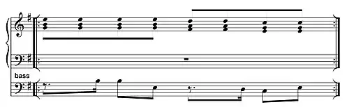 Some of Formell's songo inventions had onbeat, rock-like guajeos as well as rock harmonies. One such song is "Con el bate de aluminio" (1979). The right hand plays steady onbeats, sounding a rock‐influenced imi – bVII – bVI chord progression.[6]