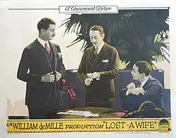 Lost: A Wife is a 1925 American silent comedy film directed by William C. deMille and written by Clara Beranger based upon a play by Clare Kummer and Alfred Savoir. The film stars Adolphe Menjou, Greta Nissen, Robert Agnew, Edgar Norton, Mario Carillo, and Genaro Spagnoli. The film was released on July 13, 1925, by Paramount Pictures.[1][2]