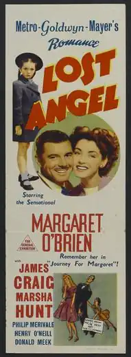 Lost Angel is a 1943 drama film directed by Roy Rowland, starring Margaret O'Brien as a little orphan girl raised to be a genius. James Craig plays a reporter who shows her the world outside the Institute of Child Psychology.