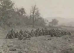 On 2 October, the 77th division launched an attack into the Argonne, under the belief that French forces were supporting their left flank and two American units including the 92nd Infantry Division were supporting their right.[1] Within the 77th sector, some units, including Whittlesey's 308th Infantry, were making significant headway. Unknown to Whittlesey's unit, the units to their left and right had been stalled. Without this knowledge, the units that would become known as the Lost Battalion moved beyond the rest of the Allied line and found themselves surrounded by German forces. For the next six days, suffering heavy losses, the men of the Lost Battalion and the American units desperate to relieve them would fight an intense battle in the Argonne Forest.