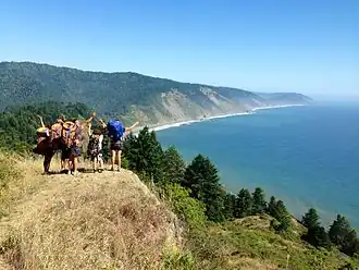 The Lost Coast is a mostly natural and undeveloped area of the California North Coast in Humboldt and Mendocino counties, which includes the King Range. It was named the "Lost Coast" after the area experienced depopulation in the 1930s.[1] In addition, the steepness and related geotechnical challenges of the coastal mountains made this stretch of coastline too costly for state highway or county road builders to establish routes through the area, leaving it the most undeveloped and remote portion of the California coast.[2] Without any major highways, communities in the Lost Coast region such as Petrolia, Shelter Cove, and Whitethorn are somewhat isolated from the rest of California.
