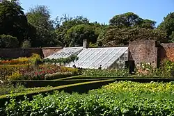 The gardens include aged and colossal rhododendrons and camellias, a series of lakes fed by a ram pump over 100 years old, highly productive flower and vegetable gardens, an Italian garden, and a wild area filled with subtropical tree ferns called "The Jungle". The gardens also have Europe's only remaining pineapple pit, warmed by rotting manure, and two figures made from rocks and plants known as the Mud Maid and the Giant's Head.