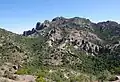 Lost Mine Peak is located in Big Bend National Park and the Chisos Mountains. It ranks as the third-highest peak in the park, mountain range, and county, but only the 20th-highest in Texas.[1][2] The mountain is composed of volcanic rock which formed during the Oligocene period.[5] Although modest in elevation, topographic relief is significant as the summit rises 2,150 feet (655 m) above Pine Canyon in 0.8 miles (1.3 km), and 2,550 feet (777 m) above Juniper Canyon in 1.5 miles (2.4 km). Based on the Köppen climate classification, Lost Mine Peak is located in a hot arid climate zone with hot summers and mild winters.[6] Any scant precipitation runoff from the mountain's slopes drains into the Rio Grande watershed. The lower slopes of the peak are covered by juniper, oak, and piñon. The mountain's toponym has been officially adopted by the United States Board on Geographic Names.[3] The peak's name comes from a legend of Spanish explorers finding silver here and enslaving local people to mine it. According to legend, the workers eventually rebelled, killed their enslavers, then sealed the entrance to prevent further exploitation.[7][8] The Lost Mine Trail was built in the 1930s by the Civilian Conservation Corps and is the most scenic and popular trail within Big Bend National Park.[9] The trail covers 4.8 miles (round-trip) with 1,000 feet of elevation gain.[10]
