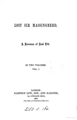 Lost Sir Massingberd: A Romance of Real Life is a novel by James Payn. It was published serially in the columns of Chambers's Journal, a popular periodical.[1] It was published as a book in two volumes in 1864.[2]