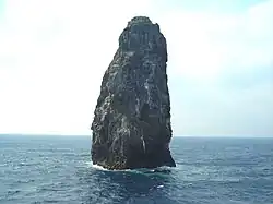 Lot's Wife (孀婦岩, Sōfu-iwa or Sōfugan; "Widow Rock") is a volcanic desert island located in the Philippine Sea approximately 650 kilometres (400 mi) south off the coast of Tokyo, at the southernmost tip of the Izu archipelago, Japan. Though only 0.01 km2 in area, it reaches almost 100 meters in height.