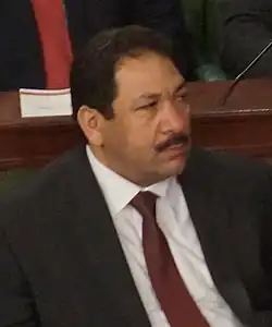 Lotfi Ben Jeddou (born 31 July 1964 in Sbeitla[1]) is a Tunisian magistrate who was Minister of the Interior from 14 March 2013 to 6 February 2015. Following the resignation of former Prime Minister Hamadi Jebali, Ali Larayedh was designated as his successor on 8 March 2013 and named his government with Othman Jerandi as foreign minister, Rachid Sabbagh as defense minister, and Lotfi Ben Jeddou as Minister of the Interior. The government was approved by the Constituent Assembly (139–45) on 13 March 2013 and took office on 14 March 2013. He is a member of the Ennahda Movement.