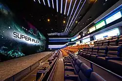 | SUPER PLEX World Tower | Formerly named SUPER PLEX G, the theater was renamed in 2022 and houses the world's largest screen (34m x 13.8m) and is listed on the Guinness Book of World Records. The auditorium has a 4K dual laser/shaker system, Dolby 136 sound package, and seating prices vary based on format and premiums. | · World Tower | [8] |