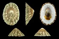 Lottia pelta, common name the shield limpet, is a species of sea snail, a true limpet, a marine gastropod mollusk in the family Lottiidae. It is still designated under its synonym Collisella pelta (Eschscholtz, 1833) in many textbooks.