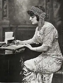 Briscoe first appeared on stage at the age of four, and by nine she was touring as Editha in Gus Thomas' adaptation of Frances Burnett's children's story Editha's Burglar.[9] Three years later, in June 1895, she was engaged at the Fifth Avenue Theatre, New York, to play Julian Esmond in the Russ Whytal melodrama For Fair Virginia, but was replaced after just two nights when the mayor's office determined that the weather was too hot for a child under sixteen to be working in.[10] Briscoe eventually did return to For Fair Virginia to play Julian Esmond over a subsequent road tour that lasted well into the spring of 1897.[11][12] By October 1897 Briscoe was back at the Fifth Avenue Theatre with Richard Mansfield's company as Essie in the American debut of Shaw's The Devil's Disciple.[13] In 1899 she toured with Walter E. Perkins playing Gertie in a farce-comedy entitled My Friend from India by Henry A. Du Souchet.[14][15][16]