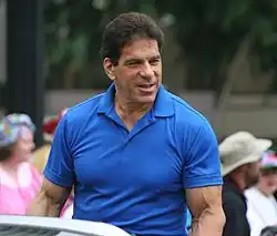 In November 1978 and again in May 1979 Ferrigno appeared in Battle of the Network Stars.[18][19] He portrayed the titular character in the 1983 science fantasy adventure film Hercules, and received mixed-to-negative reviews for his performance. He was, however, praised by Marylynn Uricchio, a film critic for the Pittsburgh Post-Gazette,[20] and Andy Brack of Charleston City Paper.[21] Gary Allen Smith, author of the book Epic Films, complimented Ferrigno's physical strength and aesthetics in the film: "At 6'5" and 262 pounds, he is a massive and thoroughly convincing Hercules".[22] In 2014, Decider named Ferrigno the tenth "hottest onscreen Hercules ever".[23]