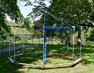 The Louden Whirl-Around is a historic object located in Fairfield, Iowa, United States. It is a type of a playground merry-go-round manufactured by the Louden Machinery Company. It was built about 1930 on the grounds of the Fairfield Country Club. The octagon-shaped apparatus is composed of steel pipe, malleable iron couplings, and wood. It is located south of the swimming pool behind the clubhouse. Louden had to begin a line of playground equipment in order to acquire patent rights that it needed to develop its line of overhead material handling systems.[2] They acquired the J.C. Porter Company of Ottawa, Illinois, which manufactured the playground equipment and held those rights. The playground apparatus exemplifies the company's growth in the 1920s. Most of the schools in Fairfield had playground equipment manufactured by Louden. The object was listed on the National Register of Historic Places in 1999.[1]