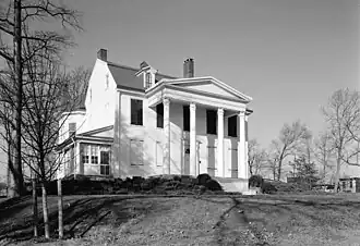 An example of Federal-style and Greek-revival architecture,[4] the main structure was built by Thomas Armat in 1801 and expanded in 1810. The Greek portico was built in 1830.[5] The house stands on one of the highest Native American Mounds (the Lenni Lenape) overlooking Philadelphia and the Delaware River from Germantown. During and after the Battle of Germantown many wounded soldiers were carried to the top of the hill where Loudoun now stands.[5]