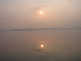 Lough Owel and Lough Ennell are two of many lakes that form the River Brosna drainage basin. The Brosna is a tributary of the Shannon, flowing through Mullingar and Kilbeggan, both in Westmeath, and from there through the town of Clara (County Offaly) into the Shannon.[5] It is a large, deep, calcareous spring-fed lake and has clear water with a high pH.