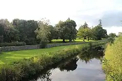 There are also sawmills, a farmyard, arboretum, green house, French stable yards, nature trails, and terraced gardens. There are two bridges across the Rynn river which connects Lough Erril and Lough Rynn, the Red Bridge and the Blue Bridge. The principal walkway across the estate starts at the Castle, veers left by the 'Ha-ha wall and Blue Bridge on your left-hand side.