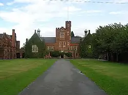 Loughborough Grammar School is set within a multi-acre campus on the south side of the town centre; it is situated on the same site as Loughborough High School and Fairfield Preparatory School, laid out along Burton Walks. Loughborough Amherst School (formerly Our Lady's Convent School) is situated on Gray Street, about 5 minutes' walk away from the main campus. The core of the LGS campus is the quadrangle, on the eastern side of Burton Walks. Dating from 1850, Big School, consisting of the Victorian Gothic tower, original gymnasium and hall are at the head of the quadrangle, nowadays accommodating the History department, Chapel and Sixth Form common room, and are the oldest buildings on the current site. The quadrangle is completed by School House (the senior boarding house, which was built as the Headmaster's residence), the Queen's Building (1995, English and Drama), the Barrow Building (c. 1910, Classics and Modern Languages), the Cope Building (2000, Modern Languages) on the north side and the Library and old laboratory buildings (now housing Computing and Religion and Philosophy) on the south side. Big School and School House are both grade II listed, as is the gatehouse[11]