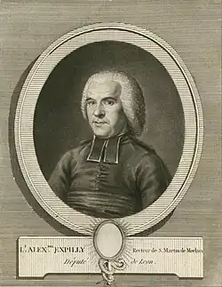 Louis-Alexandre Expilly de la Poipe (24 February 1743 in Brest – 22 May 1794 in Brest) was rector of Saint-Martin-des-Champs near Morlaix in Léon, North Finistère. He was one of two deputies elected in 1788 by the Léon assembly of clergy to represent them at the Estates-General convened by Louis XVI.