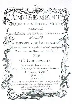 When one speaks of a man full of fire, genius and life, one has to think of Monsieur Guillemain, Musician to the King; he is perhaps the most extraordinary and adroit violinist one can hear play. There are no difficulties that can stump him and he can compose learned pieces which sometimes embarrass his rivals. Among the great Masters, this celebrated artist is one of the most productive. His works are full of touching beauty.