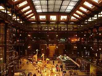 His best-known work was probably carried out for the French National Museum of Natural History : the galerie de Zoologie ('Gallery of Zoology', since 1994 renamed as "Gallery of Evolution") in the Jardin des Plantes in Paris, a transitional work combining classical rhythms and ornamental details with cast-iron structure and a glass roof. Also for the French Museum of Natural History, André designed a large greenhouse, the first jardin d'hiver (winter garden) in the Jardin des Plantes. Inaugurated in 1889, this large greenhouse was demolished in 1934 and replaced on the same footprint by the current jardin d'hiver of the Jardin des Plantes, inaugurated in 1937 and designed by architect René-Félix Berger (1878-1954).
