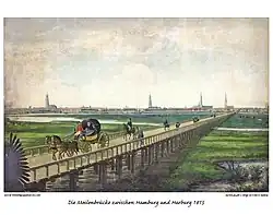 The bridge was constructed in 1813. Hamburg was particularly important as it was on the supply lines of Napoleon's army. Hamburg was only surrendered when orders came from the French King following the fall of Napoleon.