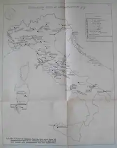 Curdes was first kept in a monastery in San Valentino, Sorano, but he and a few others escaped, but were later recaptured and taken to a much higher security prison. Four days later, the Italians signed an Armistice with the Allies. In response to this, Germany invaded its former ally. Many prison guards left their positions and rifles before the Germans could take control of the POW camp. Some friendly guards even gave prisoners rifles and blankets before letting them go. The group of about twenty officers took food, rifles (likely Carcano M1891s) and ammunition and over the next eight months, travelled south through the central Apennine Mountains, making their way toward the Allied advance. One British wing commander from Curdes' group was killed sometime after leaving the POW camp.[2] Local civilians and the communist Italian resistance aided the group by giving them handguns and supplies. The group slept during the day wherever the resistance told them to and travelled by night.[1][6]
