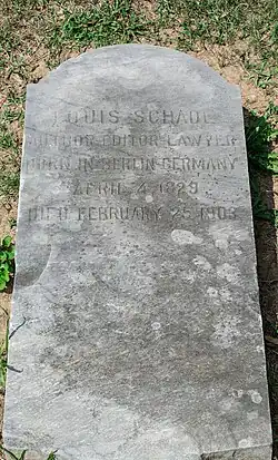 Louis Schade was born on April 4, 1829,[1] to Friedrich and Wilhelmina (née von Sydow) Schade[2] in Berlin in what was then the Province of Brandenburg in the Kingdom of Prussia.[3] He studied law and medicine at the Frederick William University in Berlin, graduating in 1848.[3] He learned to speak four European languages fluently, and could translate another five.[2] He participated in the Revolutions of 1848, erecting barricades in the streets, and was sentenced to death for his role in the revolution. He then fled the country for the United States in 1851.[2]