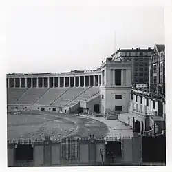 Koemmenich also conducted an open-air performance of Giuseppe Verdi's Requiem at the Polo Grounds, New York City, on 4 June 1916.[5] He conducted an augmented New York Philharmonic Orchestra of 120 players and a chorus of 1,200 singers, selected from leading local choral societies including the Oratorio Society of New York, the Peoples' Choral Union, the Beethoven Society and the Mendelssohn Glee Club. The soloists were Louise Homer (under the assumed name of 'Lucile Lawrence'),[6] Maria Gay, her partner Giovanni Zenatello and Leon Rothier.[7][5][8] Rehearsals had been going on for a month,[5] possibly taken by Arnaldo Conti who was also billed as a conductor;[7][9] but he seems not to have actually conducted during the performance.