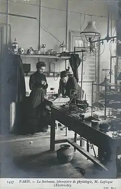 - ^ Ogilvie, Marilyn Bailey; Harvey, Joy Dorothy (2000). "Lapicque, Marcelle (de Heredia) (1873–ca.1962)". The Biographical Dictionary of Women in Science: L-Z. Taylor & Francis. pp. 745–746. ISBN 9780415920407.