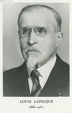Louis Édouard Lapicque (1 August 1866 – 6 December 1952) was a French neuroscientist, socialist activist, antiboulangist, dreyfusard and freemason[1] who was very influential in the early 20th century. One of his main contributions was to propose the integrate-and-fire model of the neuron in a seminal article published in 1907.[2] Today, this model of the neuron is still one of the most popular models in computational neuroscience for both cellular and neural networks studies, as well as in mathematical neuroscience because of its simplicity. A review article [3] was published for the centenary of the original Lapicque's 1907 paper - this review also contains an English translation of the original paper.