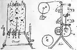 During this time he began experiments relating to the production of 'moving' photographs, designing a camera that utilised sixteen lenses,[16] which was the first invention he patented. Although the camera was capable of 'capturing' motion, it wasn't a complete success because each lens photographed the subject from a slightly different viewpoint and thus the image would have jumped about, if he had been able to project it (which is unknown).