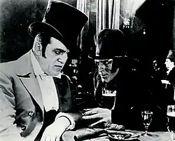 In 1914, on the advice of Lionel Barrymore and John Barrymore, Wolheim entered films. Both brothers also invited him to appear in the 1919 play The Jest in which the Barrymores co-starred.[6] He would appear in at least five films with Lionel Barrymore including a serial and four films with John Barrymore, The Test of Honor (1919), Dr Jekyll & Mr Hyde (1920), Sherlock Holmes (1922) and Tempest (1928). Wolheim appeared in two silent films with their sister Ethel Barrymore. Wolheim's fearsome visage almost immediately typecast him in roles as gangsters, executioners (as in D. W. Griffith's Orphans of the Storm) or prisoners. Towards the end of the 1920s, he occasionally broke out of these stereotypes and played a comic Russian officer in Tempest and a rambunctious Sergeant in Howard Hughes's Two Arabian Knights. He also played a Chaneyesque gangster in Hughes's splendidly photographed The Racket, a lost film for over 70 years recently rediscovered.