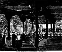 The funeral took place on 29 May 1866. A long procession, led by Bishop Aloys Elloy and about 20 clerics, accompanied the coffin from Petty's Hotel to Saint Mary's Cathedral. Amongst the coffin bearers were the Governor, the Chief Justice, the Premier, Commodore Sir William Wiseman and the Belgian consul. Many businesses in Sydney closed during the funeral and the consulates lowered their flags to half mast.[1]