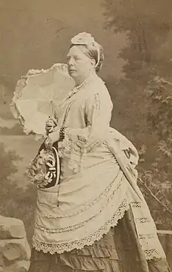 The countess accompanied her husband on court and diplomatic occasions. In 1865 she travelled with him to Stockholm when he received the Commander’s Cross of the Norwegian Order of St. Olav. At a time of tense Danish‑Swedish relations, the trip generated gossip in Copenhagen. She remarked that the fuss made it seem as if her husband were being treated like another Corfitz Ulfeldt, a 17th‑century traitor married to the king's illegitimate daughter. According to Trap, she became well acquainted with Charles XV of Sweden during the 1865 visit.[7] He gifted her Parian ware set, consisting of at least two jugs, an urn, a number of cups and other items. She later donated most of it to Rosenborg Castle.[18][19]