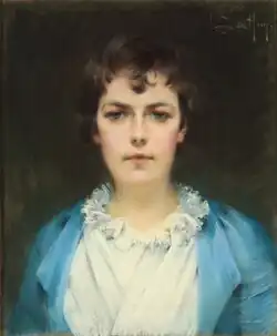 Louise de Hem (1866–1922) was a Belgian painter. She grew up in Ypres, Belgium. Her talent was discovered by Théodore Ceriez (1831–1904), a painter who had married her sister Hélène. Since women were not yet admitted to the academies he educated her and already in 1885 her painting De Oesters (The Oysters) was exhibited at a salon in Spa. Jules Breton saw her work and encouraged her to go to Paris for further education.[1]