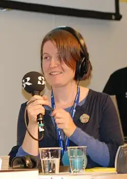 She works at Sveriges Radios culture department and is every year one of the first to comment on the announcement of that years Nobel Prize in Literature winner.[2]