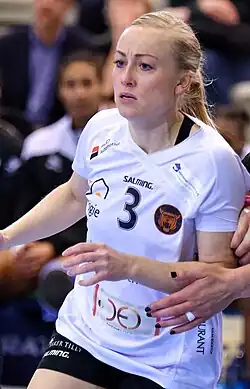 She won the Danish championship in 2018 with København Håndbold. When she retired in 2023, she had the record for most appearances for København Håndbold with 304 matches, where she had played for the last 9 years.[2] In the 2016-2017 she was part of the København team that reached the championship playoff of the Danish League for the first time in club history. The season after, in 2017/18 she won the Danish championship, the first in club history.[3]