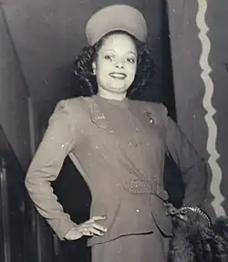 Her vaudeville career saw her partner with Bryon Ellis under the name "Bryon and Beau" after having been a member of the Cotton Club Cuties chorus group.[3][5] Her 1935 theatre role in School Days alongside Dickie Walker had the California Eagle refer to the pair's performance as akin to Aurora Greely and Leroy Broomfield.[6] That same year she signed onto Maceo Burch's Kansas City theatre company and was said to "possibly be called the leader of the group" by the California Eagle due to her talents as an entertainer.[7] After the company toured in California, she stayed and played in a number of film and stage roles in the following years. Harry Levette in the California Eagle said she was "Hollywood's prettiest, cleverest, most personable dancer".[8] In 1943 during World War II, she reportedly joined the Women's Army Auxiliary Corps, though this was denied by her husband.[9]
