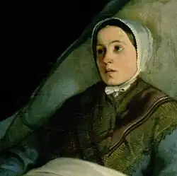 Lateau's father died of smallpox ten weeks after her birth. Louise also contracted the disease and was saved with much difficulty.[2] At age 11, Lateau's mother put her out to work as a housemaid. Shortly thereafter, Lateau was brought back by her mother and had to work as a dressmaker. During a cholera epidemic in Bois-D’Haine in 1866, Lateau, then 16, nursed six of the epidemic victims. The following year, she became seriously ill herself; the disease lasted until 1868. On 15 April 1868, she was so ill that she received the last rites. Ten days later, she had her first experience of the stigmata.[3]