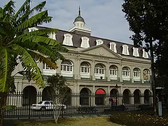 - The Cabildo - Spain's old City Hall, or "Casa Capitular," built in 1799. Site of the two Louisiana Purchase transfers of 1803 (from Spain to France, and from France to the U.S.). Housed various government offices, including the Louisiana Supreme Court. The Cabildo displays three floors of exhibits concerning Louisiana's history, with additional changing exhibits in the adjoining Arsenal building.