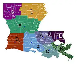 The department is divided into nine troops, with its headquarters in Baton Rouge. The troops are divided as follows:
