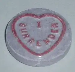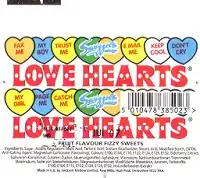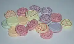 Love Hearts are a type of confectionery manufactured by Swizzels Matlow in the United Kingdom.[1] They are hard, tablet-shaped sweets featuring a short, love-related message on one side of the sweet. They are an updated version of Victorian-era conversation lozenges.[2]
