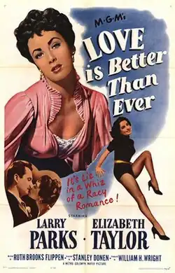 Love Is Better Than Ever is a 1952 American romantic comedy film directed by Stanley Donen from a screenplay by Ruth Brooks Flippen, starring Larry Parks and Elizabeth Taylor. The plot concerns a small-town girl who falls in love with a big-city talent agent.[2]