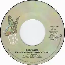 "Love Is Gonna Come at Last" was released on Airwaves, Badfinger's first album since original guitarist Pete Ham committed suicide in 1975. Despite its billing as Badfinger's "comeback album," it failed to make much of an impression on listeners, only hitting No. 125 in America. "Love Is Gonna Come at Last" was released as the album's lead single in the US. Backed with the Tom Evans-penned "Sail Away" (also from Airwaves), the single was the only one from Airwaves to chart, reaching No. 69 on the Billboard Hot 100 in the United States.