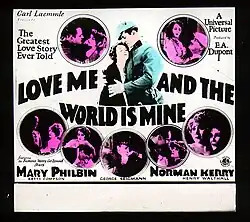 Love Me and the World Is Mine is a 1928 American silent romantic film directed by Ewald André Dupont (E.A. Dupont) and released by Universal Pictures.[2][3]