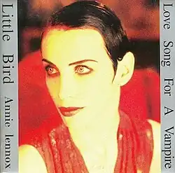 "Love Song for a Vampire" is a song composed and recorded by Scottish singer-songwriter Annie Lennox. It was recorded for Francis Ford Coppola's 1992 film, Bram Stoker's Dracula based on the 1897 gothic horror novel, where it plays during the end credits. Produced by Stephen Lipson, it was released in February 1993 by RCA and BMG as a double A-side with "Little Bird" in Ireland, the United Kingdom and several other countries in Europe. The music video for the song was directed by Sophie Muller, featuring footage from Bram Stoker's Dracula.